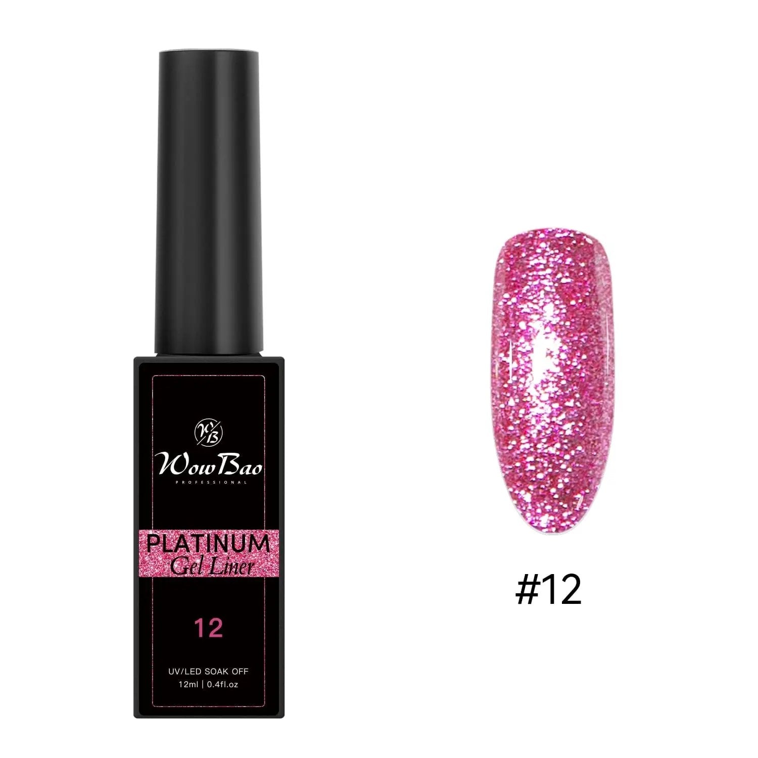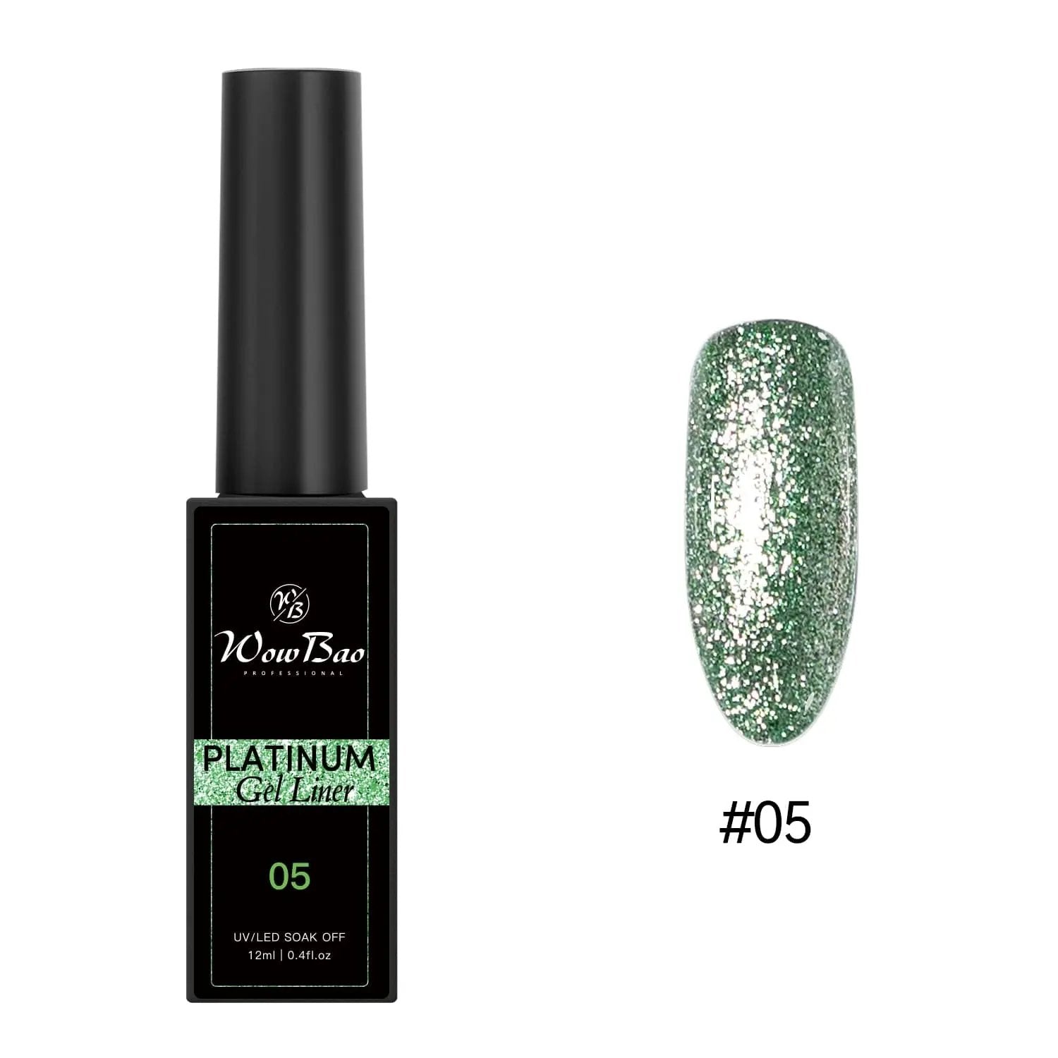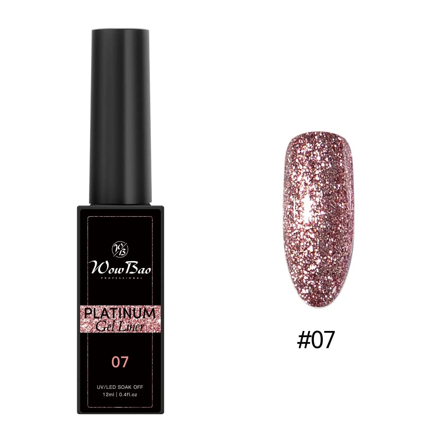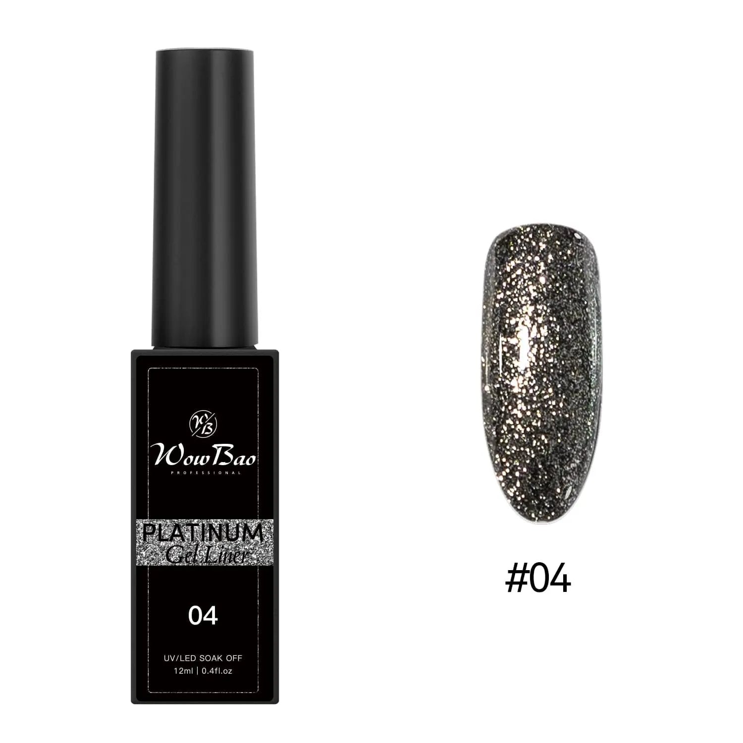 WowBao Platinum Glitter Liner Gel Paints tpo / hema free is highly pigmented, featuring a fine brush to create intricate nail art.