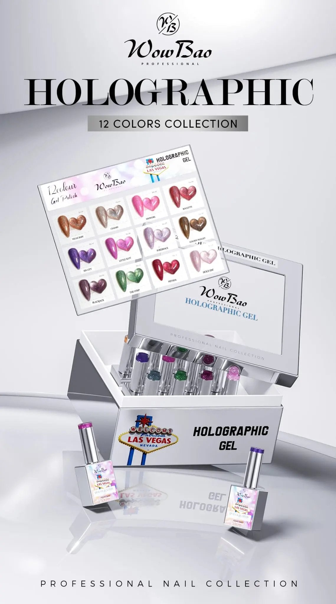 Collection of 12 Las Vegas holographic Gel Polishes
